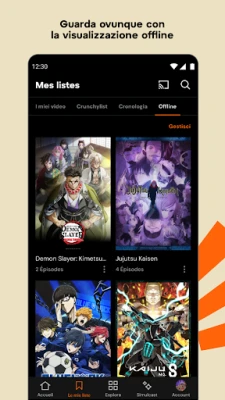 Per gli appassionati che cercano il massimo, Crunchyroll Premium sblocca un mondo di privilegi. Goditi l'accesso anticipato ai nuovissimi episodi, trasmessi in simulcast poco dopo la messa in onda in Giappone, e immergiti in titoli esclusivi come gli acclamati Crunchyroll Originals, nati da collaborazioni con i migliori studi. Gli abbonati Mega Fan e Ultimate Fan possono beneficiare della visione offline, per non perdere mai un momento delle loro serie preferite anche senza connessione, e gli Ultimate Fan estendono l'accesso fino a sei dispositivi contemporaneamente. Inoltre, il Crunchyroll Game Vault offre giochi mobili esclusivi, privi di pubblicità e acquisti in-app, arricchendo ulteriormente la tua passione per l'universo anime con un catalogo che vanta oltre 2.000 titoli, inclusi capolavori come *Solo Leveling*, *Attack on Titan* e *Jujutsu Kaisen*.