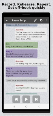 Liberati dallo stress della memorizzazione e porta le tue performance al livello successivo con Script Rehearser, lo strumento definitivo per chiunque debba apprendere e padroneggiare testi. Che tu sia un attore impegnato in una nuova produzione teatrale, un oratore che prepara un discorso cruciale, un professionista che affina una presentazione, o uno studente che esercita una lingua straniera, Script Rehearser è il tuo assistente personale. Progettato per ottimizzare il tuo tempo e migliorare l'efficacia del tuo studio, trasforma ogni sessione di prova in un'esperienza produttiva e personalizzata.