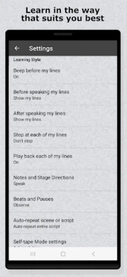 Memorizza dialoghi, copioni teatrali, sceneggiature e discorsi in modo efficace e conveniente. Preparati ovunque, senza bisogno di un partner di scena o del resto del cast. Ottimizza il tuo tempo e sali sul palco sapendo ogni battuta.