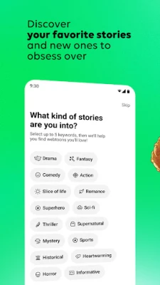 WEBTOON ti invita a esplorare un universo narrativo senza confini, dove milioni di capitoli ti attendono gratuitamente. Immergiti nella più vasta collezione di webcomic digitali, scoprendo mondi che spaziano dall'azione mozzafiato al romanticismo più dolce, dal thriller avvincente alla fantascienza. Ogni genere trova la sua voce in WEBTOON. Ma l'esperienza non si ferma alla lettura: rivivi le tue storie preferite in un modo completamente nuovo, grazie agli episodi video disponibili ovunque e in qualsiasi momento, per un intrattenimento fluido e coinvolgente.